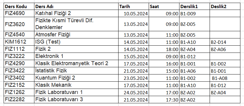 Fizik Lisans 1. ara sınav programında çakışan dersler hk.
