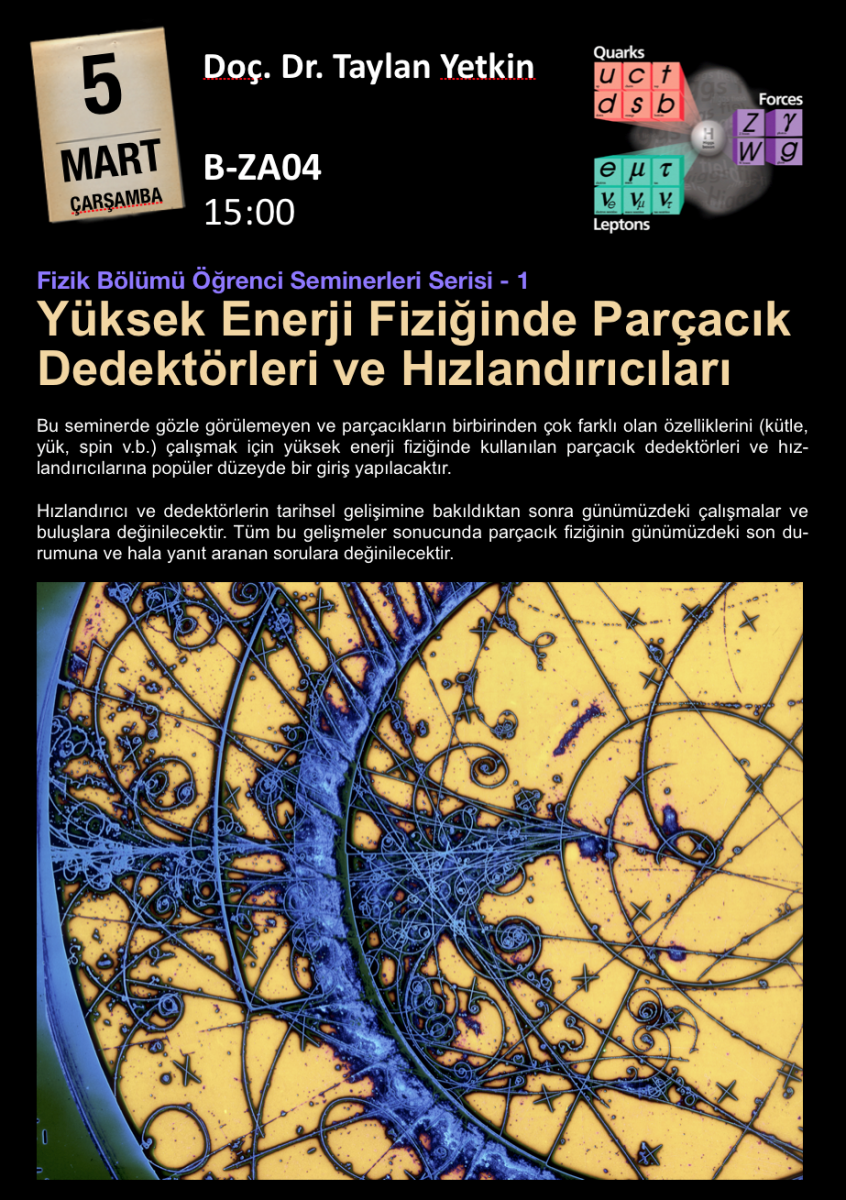 Fizik Bölümü Öğrenci Seminerleri Serisi - 1 Yüksek Enerji Fiziğinde Parçacık Dedektörleri ve Hızlandırıcıları